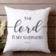 Jetez un oreiller élégant avec les mots "Le Seigneur est mon Berger" sur le devant et un élégant imprimé en dentelle noir et blanc sur le dos. Voir tous nos décors dans notre boutique Zazzle!