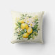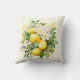 A pillow with a lovely illustration of a bouquet of lemons surrounded by white blossoms leaves and sprigs.