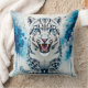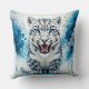 Une œuvre d'art vivante mettant en vedette un léopard blanc rugissant au centre d'un design dynamique d'éclaboussures bleues, soulignant la force, la sauvagerie et la créativité.