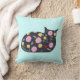 La peinture d'un chat noir s'étendant, décorée des fleurs et des plantes qui énumérées en tant que coffre-fort pour que des chats mangent, sont sont imprimées sur les coussins faits sur commande. Les plantes incluent la marguerite de Gerber, le nasturce, l'herbe de céréale, et le cataire. Merci pour CherylsArt de achat sur Zazzle.