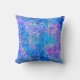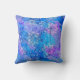 L'oreiller à jetons présente un design floral abstrait dans les tons bleu, lavande et violet.