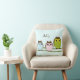 Coussin d'accent de la chambre à coucher de l'enfant mignon fait à un arrière-plan bleu-clair. Les graphiques de bande dessinée un bleu et brun, d'un rose et brun et un hibou vert et brun se reposant sur les branches vertes décore l'avant et le dos du coussin. Personnalisez le texte brun lunatique pour votre pièce d'enfant.