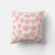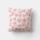 Cet oreiller à jetons a un design moderne de Valentine du milieu du siècle de labyrinthe de coeur rouge éparpillé sur un champ de blanc.