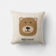 Beau ours brun enfants bébé jetez l'oreiller - personnalisez avec votre propre nom ou choix de texte à l'avant, motif de tête d'ours à inverser. Éléments correspondants disponibles. Art original d'artistes propres illustrations. Veuillez utiliser le bouton Message me ci-dessous pour obtenir de l'aide sur la personnalisation et les demandes spéciales. © Zoe Chapman Design
