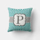 Coussin Lettre blanche turquoise P Chevron de monogramme