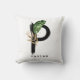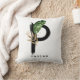 Lettre personnalisable P monogramme coussin avec aquarelle feuille de palme tropicale, fausse feuille de feuille d'or et accents de brosse d'aquarelle noire. Personnalisez ce coussin de monogramme tropical en ajoutant votre nom ou d'autres détails. Ce coussin de monogramme de lettre de sauce P sera parfait comme cadeau. D'autres lettres sont disponibles.