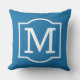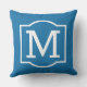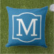 Le coussin d'accent extérieur carré élégant et classique dispose d'un premier monogramme avec un cadre décoratif simple en blanc avec couleur arrière - plan bleu cobalt. Customisez l'arrière - plan pour coordonner votre décoration extérieure.