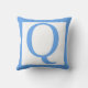 Lettre Q. Joli coussin décoratif avec monogramme (initiale unique). La bordure et la lettre unique sont de couleur bleu bébé.