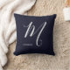 Coussin Lettre Script monogramme simple M Navy Bleu