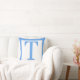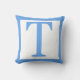 Lettre T. Joli monogramme (unique en première ligne) jeter l'oreiller. La bordure et la lettre unique sont faites en bleu bébé. Nos oreillers à jetons sont offerts en trois tailles : carré 16 po x 16 po, carré 20 po x 20 po, ou coussin lombaire de 13 po x 21 po, et en coton ou polyester. Produite par des mères célibataires ayant un emploi durable aux États-Unis, votre achat de coussin sur mesure contribue à briser le cycle de la pauvreté pour les mères célibataires et leurs enfants pendant qu'il est beau dans votre maison! De Scarribaby Design, soutenu par la garantie Zazzle.