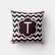 Lettre T. Joli monogramme (unique en première ligne) jeter l'oreiller. Bandes en zigzag noir et blanc (chevron), avec des détails blancs et fuchsia et une seule initiale au centre. Nos oreillers à jetons sont offerts en trois tailles : carré 16 po x 16 po, carré 20 po x 20 po, ou coussin lombaire de 13 po x 21 po, et en coton ou polyester. Produite par des mères célibataires ayant un emploi durable aux États-Unis, votre achat de coussin sur mesure contribue à briser le cycle de la pauvreté pour les mères célibataires et leurs enfants pendant qu'il est beau dans votre maison! De Scarribaby Design, soutenu par la garantie Zazzle.