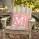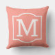 Coussin d'accent extérieur carré élégant et classique avec un premier monogramme avec un cadre décoratif simple de couleur blanche avec corail rose / orange arrière - plan couleur. Customisez l'arrière - plan pour coordonner votre décoration extérieure.