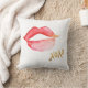 Coussin Lèvres et feuille d'or XOXO d'aquarelle