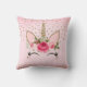 Coussin Licorne à paillettes dorées et fleurs roses