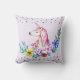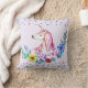Coussin Licorne mignonne d'aquarelle avec floral