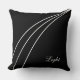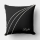 Lignes ondulées abstraites et blanches modernes sur oreiller à lancer noir argent. Le design simple mais élégant correspond à la plupart des couleurs. La calligraphie textuelle peut être personnalisée.
