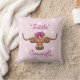 Personnalisez ce Coussin de petite fille Western "One of a Kind" ! Il présente une vache longhorne comique portant un joli cabot violet sur un Arrière - plan rose clair et blanc étoile et entourée par les mots...."Petite Femme" Ce Coussin "Petite Femme" a une couverture et une Lampe en polaire correspondants ! Design D'Art Original Par L'Artiste Kerry Miller !