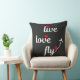 Coussin Live Love Fly Typographie avec avion & Coeurs