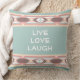 Ce coussin de style Aztec est parfait pour votre salon, chambre ou même la chambre de votre fille de dortoir ! L'arrière - plan est bleu pâle et il y a deux larges bandes d'un motif aztèque avec "Live Love Laugh" au milieu.