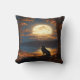 Coussin Loup hurlant sous la Pleine lune brillante à Dusk