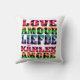 Do you like home decor with a positive message? This throw pillow features the word love in English, French, Dutch, Swedish and Italian with a neon heart pattern.