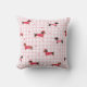 Here's a cute pillow that makes a nice Valentine gift for the person who loves their Dachshund Dog! It features a pink and white gingham check pattern with images of little Dachshund dogs wearing heart pattern sweaters. Along with the dog images are tiny red hearts scattered about. The back of the pillow has the same pattern, with a double framed heart with your custom text. Currently it says "LOVE my Dachshund Dog", but you may personalize it with a name or your own text. Makes a great gift for any occasion, not just Valentine's Day!