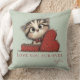 Coussin Love You Fur-Ever Cute Cat Sage Green Throw Pillow
