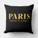Throw oreiller design caractéristiques Paris, France latitude et longitude coordonnées de carte en texte or sur arrière - plan noir.