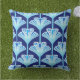 Coussin Lys Art Déco, Bleu Cobalt, Aqua et Blanc