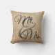 Coussin M. et Mme Burlap Wedding Personalized