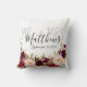 Personnalisé épousant le coussin de souvenir avec la conception florale d'aquarelle de Bourgogne, le M. gris et la Mme main a marqué avec des lettres le manuscrit avec le nom de famille marié et la date de mariage dans le recouvrement noir de typographie de police de manuscrit imprimé sur un arrière - plan de couleur solide. Fait un grand cadeau de mariage pour les nouveaux mariés ou le cadeau de fiançailles. Grand pour votre chambre à coucher, chaise préférée, comme décor d'amusement dans votre chambre familiale ou addition décorative formelle à votre salon comme souvenir l'épousant aimé