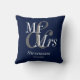 Coussin M. et Mme Marine Bleu Élégant cadeau Mariage moder