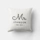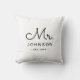 Pour les mariés, cet oreiller décoratif comporte "M." et "Mme" dans une police de caractères moderne et élégante ainsi que le nom de famille et la date établie. C'est un cadeau de mariage ou de shower de mariage idéal.