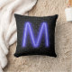 M initial en marquee lumineux néon mauve de marquee sur mur de brique urbaine. Contactez-moi pour le changement initial de lettre.
