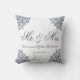 Coussin M. & Mme Mariage blanc bleu élégant écriture