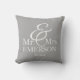 Ajoutez le nom de famille et la date "établi" ou mariage à l'avant de ce coussin décoratif gris et blanc "M. & Mme".