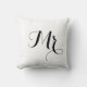 M. Pillow dans le noir sur la couleur beige légère d'arrière - plan, avec le dos noir et léger rayé de beige. Une partie de M. et de Mme paire. Personnalisable. La couleur d'arrière - plan, le texte, et la couleur des textes peuvent être changés.