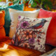Coussin Magnifique oiseau rouge et fleuri été