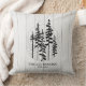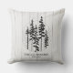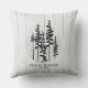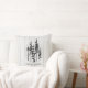 Cette housse de coussin festive et confortable de style ferme arbore des silhouettes de forêt de pins peintes à la main sur un fond en bois de ferme blanc faux. Cadeau idéal pour les jeunes mariés & premier Noël de mariage ou cadeau pour pendaison de crémaillère. Copyright Anastasia Surridge pour The Christmas Shop, tous droits réservés.