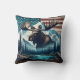 Coussin Majestic Moose Against Mountains et drapeau améric