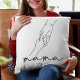 Un oreiller mignon pour les mamans avec un dessin en ligne d'un enfant tenant la main de leur mère, le titre 'MAMA' dans une police de caractères de script moderne, et l'année où elle est devenue parent.