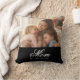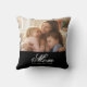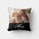 Célébrez la maternité avec ce Coussin de décoration photo « Maman a établi » écriture élégante blanche. Ce design élégant noir et blanc présente une mise en page de photo personnalisée minimaliste et une typographie stylée. Personnalisez-le facilement avec votre propre photo de famille et date d'établissement, pour créer un cadeau unique pour la fête des mères ou un souvenir de décoration intérieure personnalisé.