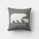 Maman et bébé ours coussin pour la décoration de la nurserie. Au dos de l'oreiller a un motif à pois blanc sur un coussin gris.