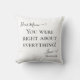 Le cadeau parfait pour votre maman ! "Chère maman, tu avais raison sur tout ! Amour, (ajoutez votre nom pour personnaliser)". Les mots Chère Maman et Amour sont en joli écriture avec un style moderne et le You Were Right About Everything est dans une police de caractères tous casquette qui a beaucoup de style. Idéal pour une fille ou un fils à donner à sa mère ! Elle adorera montrer ce coussin parce qu'il n'est pas seulement drôle mais a l'air extraordinaire en noir et blanc chic. Une façon humoristique et douce de lui faire savoir combien vous l'aimez et appréciez son conseil.