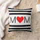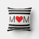 Maman du coeur moderne sur oreiller à rayures noir et blanc.