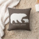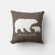 Maman et bébé ours coussin pour la décoration de la nurserie. Au dos du coussin a un motif à pois blancs sur un coussin marron.