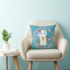 Lancer turquoise oreiller avec manekineko japonais chat calico chanceux entouré de fleurs de cerisiers. Le médaillon autour du cou du chat dit "daikichi" ce qui signifie très bonne chance. Le poisson que tient le chat est aussi un symbole de chance. Et le chat calico est le manekineko le plus chanceux de tous. C'est donc un coussin chanceux !