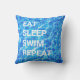 Ce design moderne comprend une piscine bleu étincelante carrelée arrière - plan avec le texte "Mange Sleep Swim Repeat" dans la typographie moderne #cadeaux #coutume #maison #déco #coussins #coussins #extérieur #extérieur #patio #giftsforgirls #natation #giftsforswimmers