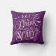 Coussin Mangez Boire et soyez effrayant Halloween violet