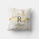 Coussin Marbre Blanc & Or Barre Or, Monogramme Nom Noir DI